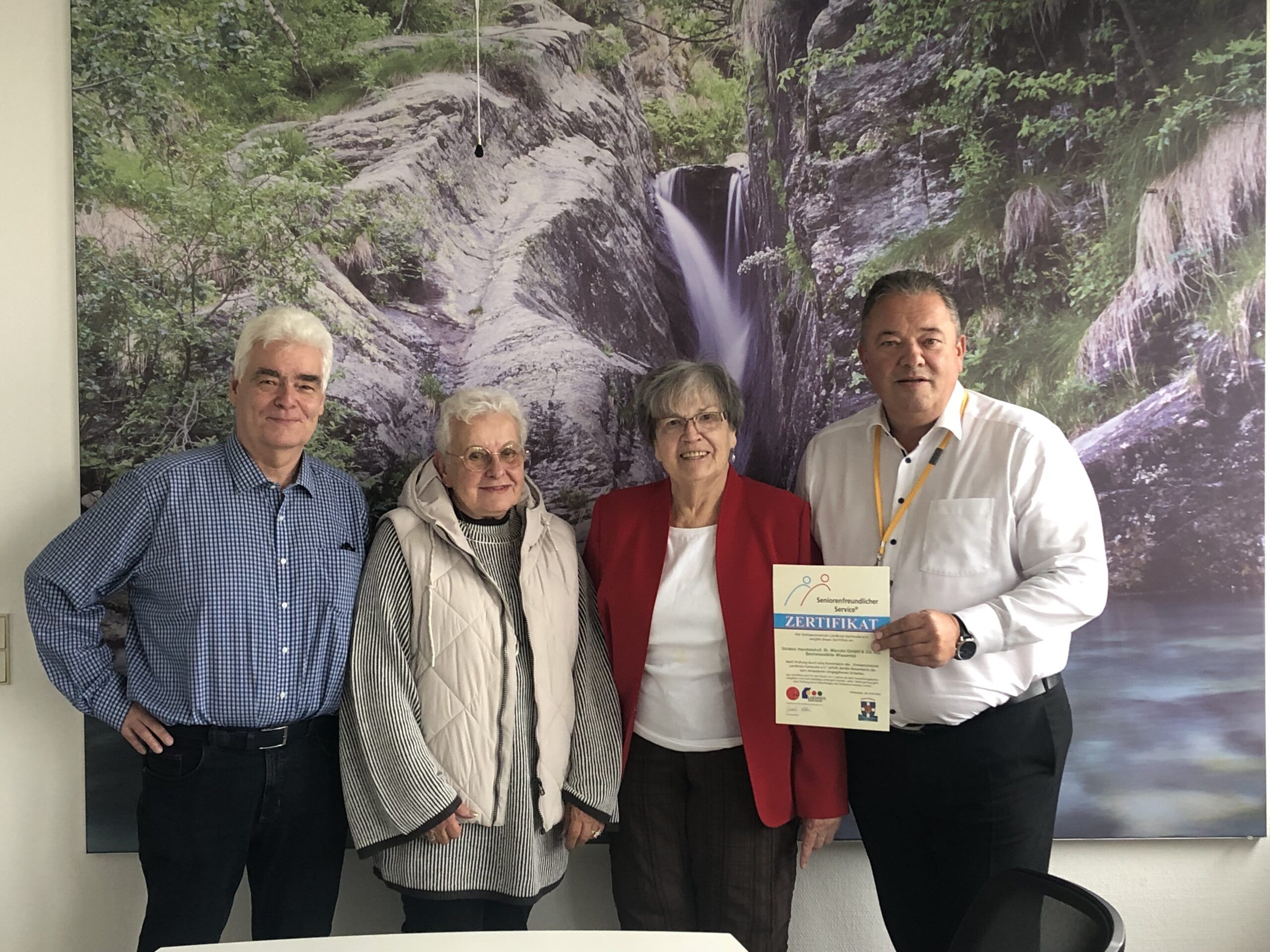 Mit dem Zertifikat „Seniorenfreundlicher Service“ werden Unternehmen ausgezeichnet, die auf die unterschiedlichsten Bedürfnisse der Kundengruppe der Seniorinnen und Senioren sowie den Menschen mit Handicap eingehen. Selbstverständlich wird auch die Kundenfreundlichkeit und das Zuvorkommen bewertet, das bei Globus in Wiesental eine ebenso große Priorität hat wie die anderen Bewertungspunkte ebenso. Besonders erwähnenswert ist, dass Globus sogar über eine behindertengerechte Kasse verfügt. Die Vorsitzende des KSR, Ursula Alber, Gertraud Rietschel vom Seniorenbeirat Hambrücken und Jürgen Zink, Vorsitzender Seniorenbeirat Waghäusel konnten Mario Limbach, dem Geschäftsleiter, stellvertretend für alle Mitarbeiterinnen und Mitarbeiter im Globus Wiesental dieses Zertifikat überreichen.