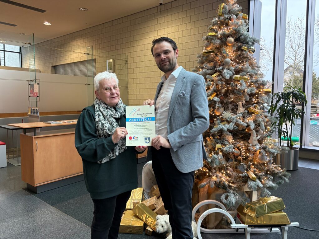 Am 8. Dezember durften wir der Sparkasse in Graben-Neudorf das Zertifikat für „Seniorenfreundlichen Service“ überreichen.